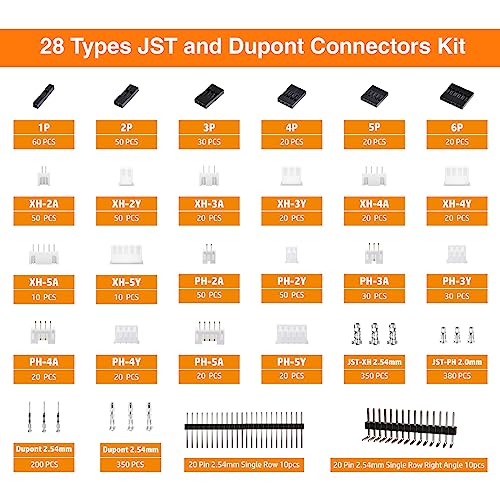 ✅ CONNESSIONI FORTI - Incluse pinze a crimpare + pinze spelafili + 28 diversi tipi Dupont e JST, nessun progetto di crimpatura rimane incompiuto. Perfetto per fai da te manuale, dispositivo di stampa 3D e componenti domestici, ecc. C'è sempre il connettore giusto e adatto a tutti in questo set professionale.