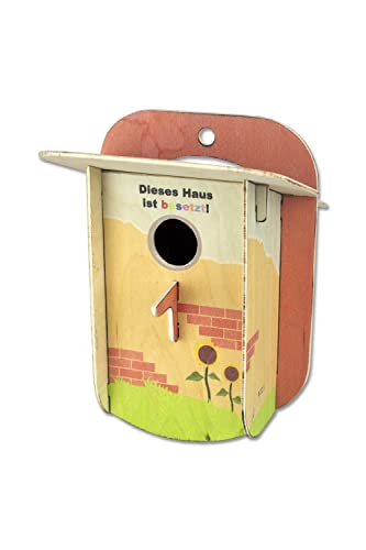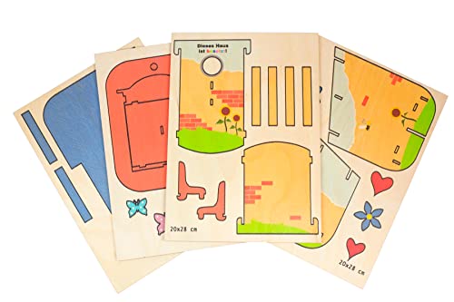 Modello creativo in compensato stampato con il motivo casetta per uccelli colorato da segare con la sega da traforo