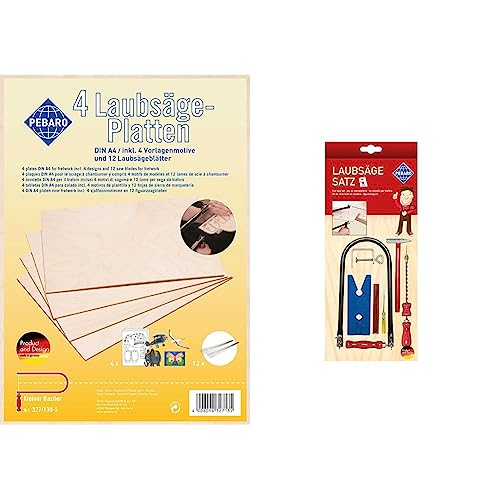 Pebaro 935 - Set Seghetto Da Traforo & 327/130-5 - Set Di 4 Tavolette Di Compensato Di Betulla Per Traforo, 12 Seghetti Inclusi