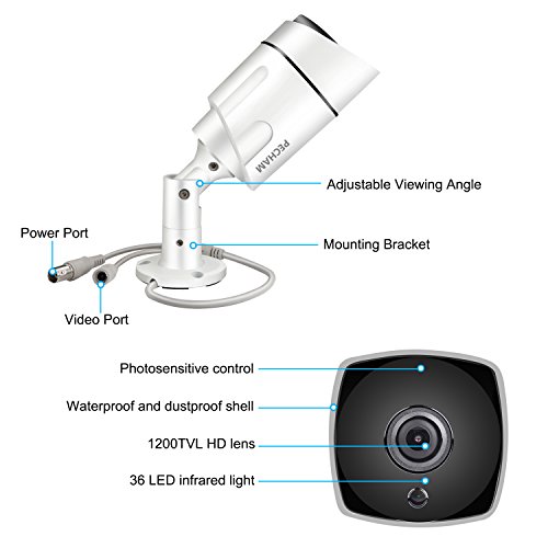 PECHAM Telecamera analogica CCTV Telecamera esterna di sicurezza con visione notturna (1200TVL 36 IR-LEDs Lenti grandangolari 3.6mm). Alta risoluzione, IR (800tvl white)