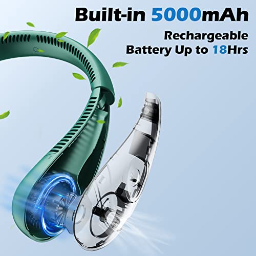 PECHTY Ventilatore Collo Portatile e Pieghevole, Ventilatore Silenzioso senza Pale USB Ricaricabile con Batteria 5000mAh, 3 Velocità Mini Neck Fan per Ufficio Cucina Viaggi Sport (Verde)