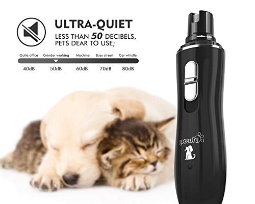 【Rumore Basso, Ricarica Veloce e Durata Lunga】Smerigliatrice elettrico tagliaunghie adotta il motore silenzioso di DC3,7V ed è inferiore a 50 dB, gli animali domestici non temono;