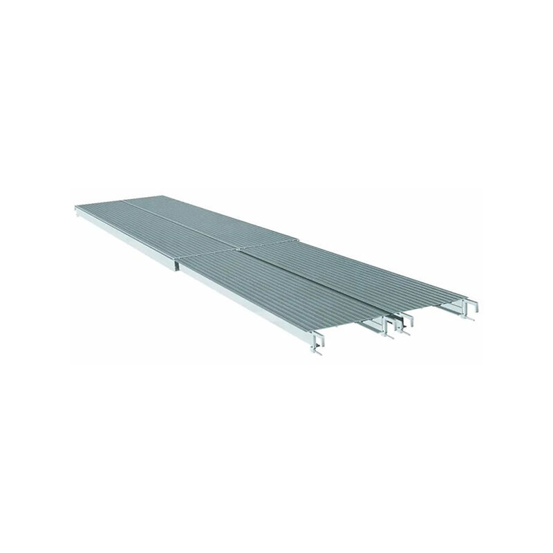USO - Costruire un piano di lavoro per facilitare il movimento in altezza. - Facilitare la rinovazione di tetti e capannoni, facciate e coperti. - Per cantieri di lavoro, facciate di edifici, creazione di aperture e passaggi. - Cantieri per la costruzione di edifici, appartamenti o case individuali. CARATTERISTICHE - Larghezza da 30cm o 60cm in quanto le pedante sono innestabili facilmente. - Apertura dei ganci: 50mm. - Pedana in alluminio testata su 360 kg per pedana ripartita su 3m per 60cm. - Testata a norma EN 13374. - Conforme alla classe C.