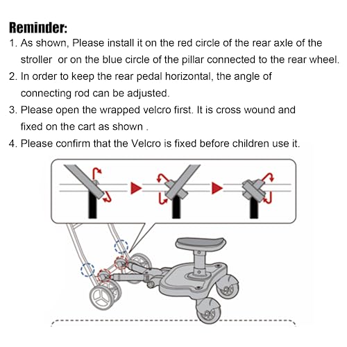 Facile da installare e si adatta alla maggior parte dei passeggini -- Questo pilota universale può essere compatibile con la maggior parte dei passeggini fissando con nastri adesivi regolabili. Quando si montano le cinghie, è necessario tirarle saldamente intorno ai lati del telaio del passeggino per ottenerle È possibile risparmiare spazio appendendole a un passeggino con una cinghia di stoccaggio se non si desidera rimuovere completamente la tavola