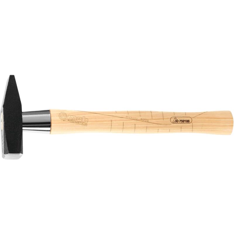 Con manico in noce americano forma bordata, verniciata. Testa del martello forgiata e rettificata a misura. Temprata e rinvenuta in modo accurato. Testa verniciata, superficie battente e penna lucide. A partire da Dim. 200 con collarino di rinforzo in acciaio. Norma: Hammerkopf nach DIN 1041. Materiale: Acciaio speciale per utensili. Ricambi: Manico di ricambio disponibile al n. art. 752200, per Dim. 50 disponibile al n. art. 751700 250 e per Dim. 100 disponibile al n. art. 751700 260. Dati tecnici Tipo di prodotto Martello Lunghezza manico, mm 310 Peso senza manico, g 400