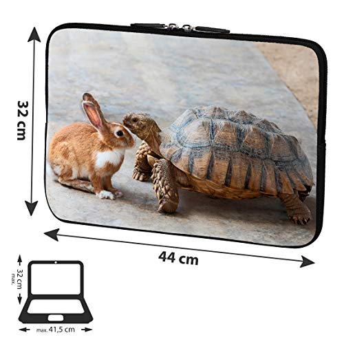 PEDEA Design - Custodia protettiva per notebook fino a 17,3 pollici (43,9 cm), con tappetino per mouse e mouse senza fili, Rabbit and Turtle