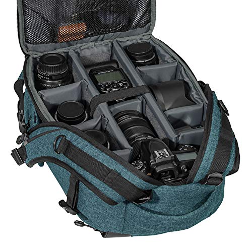 Suddivisione pratica all'interno dello zaino grazie ai diversi scomparti: 1x tasca principale (con 8 divisori regolabili), 6x tasche supplementari per accessori e portapenne;