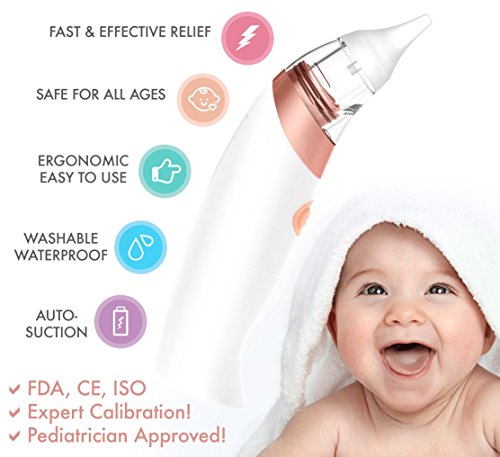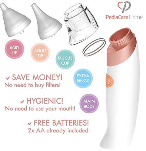 Pediacare Home, aspiratore nasale elettrico per neonati, risucchia il catarro, aiuta il tuo bambino a dormire meglio e a respirare facilmente, edizione premium in colore oro rosa, confezione regalo inclusa