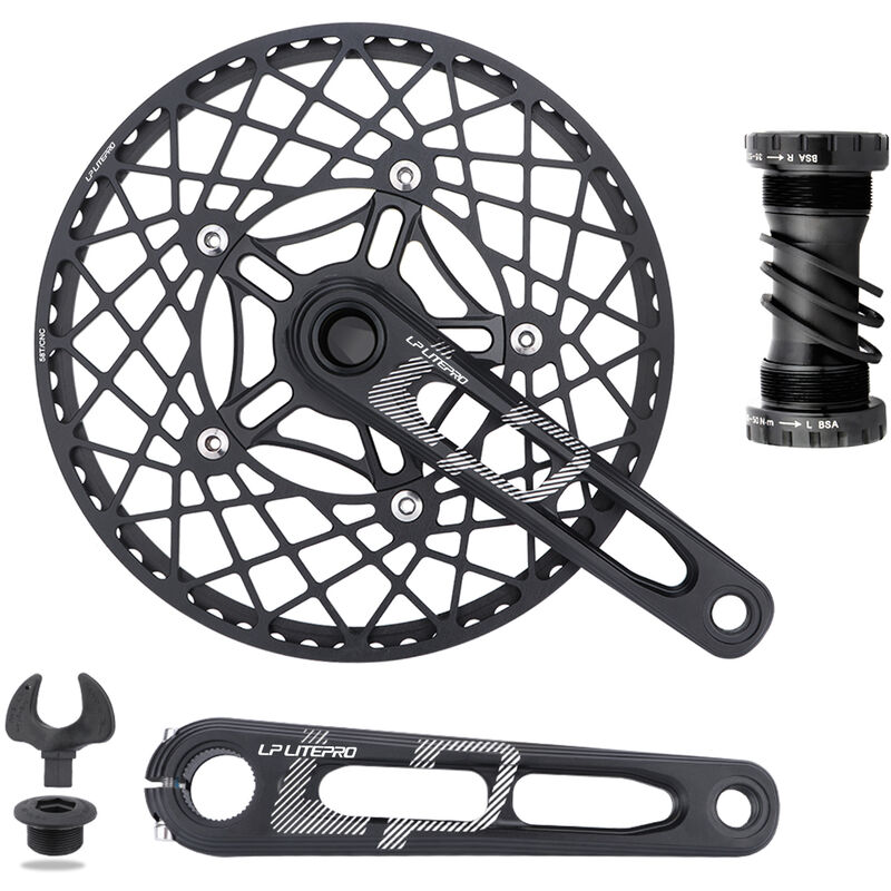 Caratteristiche: La costruzione in lega di alluminio è solida, incredibilmente resistente e leggera. La lavorazione CNC migliora la resistenza e la rigidità. Design scavato per ridurre il peso senza sacrificare la resistenza. Movimento centrale filettato, con buona tenuta e bassa rumorosità. Larghezza del movimento centrale: 68-73 mm. GAV: 130 mm. Lunghezza pedivella: 170 mm. Grandi pezzi di ricambio per biciclette pieghevoli. Specifiche: Materiale: lega di alluminio Corona: 53T / 56T / 58T (opzionale) GAV: 130 mm Lunghezza pedivella: 170 mm Mandrino: 115 mm Larghezza del movimento centrale: 68-73 mm Peso della pedivella: ca. 473 gr Peso totale: ca. 1300 g Elenco dei pacchetti: 1 set di pedivelle 1 * Corona 1 * Movimento centrale 5 * Bulloni 1 * Vite a manovella 1 chiave a brugola per bullone della guarnitura