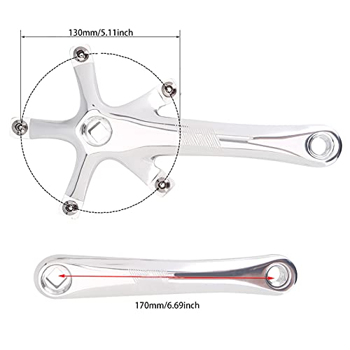 Set di pedivelle per bici, set di pedivelle ad alta resistenza 170 mm di lunghezza del braccio in lega di alluminio set di bracci per biciclette da pista per la riparazione di biciclette(D'argento)