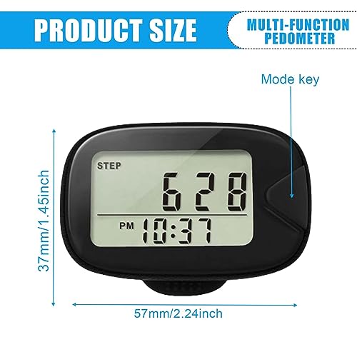 Tempo preciso: questo contapassi è leggero e portatile e dispone di un display LCD. Con questo contapassi fitness tracker, non è necessario portare il telefono per l'allenamento, basta premere brevemente il pulsante per controllare l'ora (regolabile 12/24 ore).