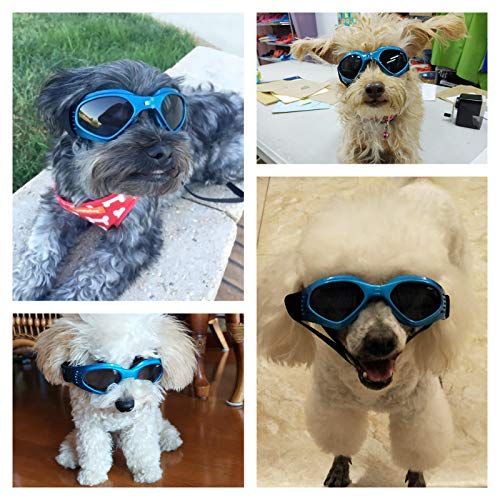 PEDOMUS Occhiali da Sole per Cani, Cinghie Regolabili per Occhiali da Sole UV, Protezione Impermeabile per Cani di Piccola e Media Taglia Blu