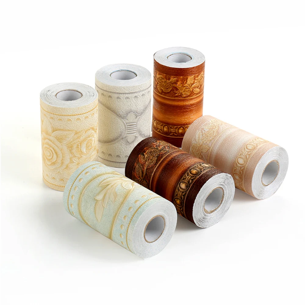 3D Peel and Stick Waterproof PVC Wall Border Decorative Wallpaper Border Removable Self Adhesive Wall Covering Flower Molding