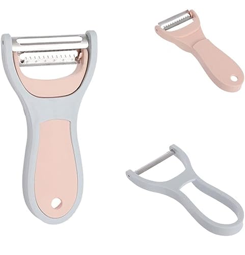 Peeler due-in-uno pelapatate pelapatate pelapatate in acciaio inossidabile pelapatate multifunzione swing pelapatate universale pelapatate frutta carota (Blu-rosa)