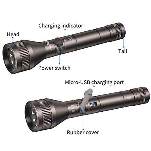 PEETPEN Torcia a LED L9, 800 lumen, torcia elettrica estremamente luminosa, USB ricaricabile, torcia tattica, IPX4, impermeabile, 4 modalità di luce per campeggio, escursionismo, emergenze