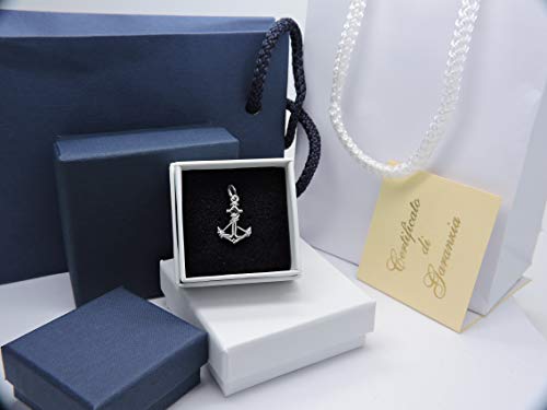 PEGASO GIOIELLI Ciondolo Oro Bianco 18kt (750) Pendente Ancora Filo Corda Uomo Donna Bambini