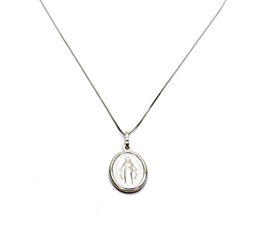PEGASO GIOIELLI Collana da Donna in Oro Bianco 18kt (750) Catenina Veneta Pendente Religioso Madonna di Lourdes Miracolosa