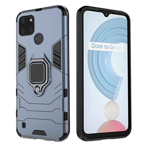 PEIYE Cover per Realme C21Y (Realme C21-Y)/ Realme C25Y, Silicone TPU Custodia con Calamita Supporto (Anello) Dietro -Blu