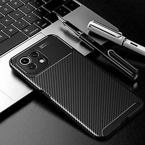 PEIYE Cover per Xiaomi Mi 11 Lite NE | Mi 11 Lite 5G | Mi 11 Lite, Silicone TPU Custodia [ Fibra di Carbonio ] -Blu