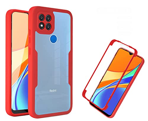 PEIYE Cover per Xiaomi Redmi 9C NFC/Redmi 9C, [ Pellicola Protettiva Integrata ], Trasparente 360 Gradi Custodia con TPU Silicone Bumper e PC Retro -Rosso