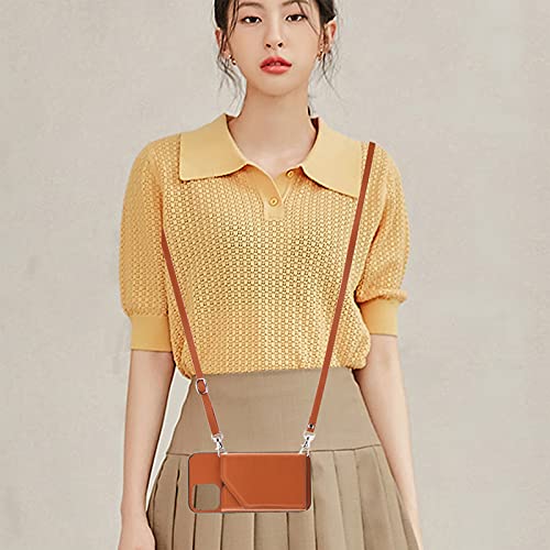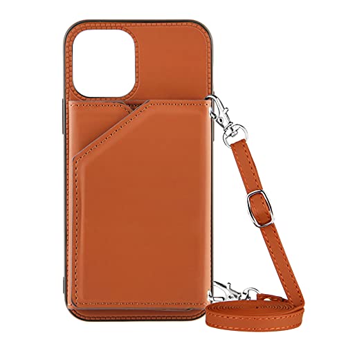 PekaTech Custodia con Collana per iPhone 13 con Cordino e Porta Carte, Cover Portafogli di Pelle PU [Antiurto] [AntiGraffio] [Antiscivolo] con Cordino Case con Laccio Tracolla, Marrone