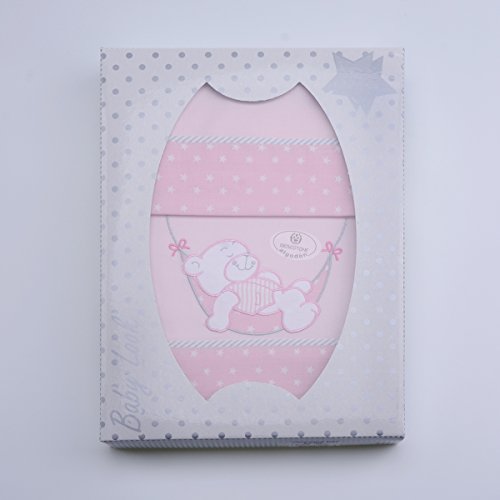 PEKITAS Set di 3 lenzuola sottili per auto/ovetta/passeggino, 40 x 80 cm, 100% cotone, prodotto in Portogallo, federa per cuscino + lenzuolo con elastico, orsetto rosa