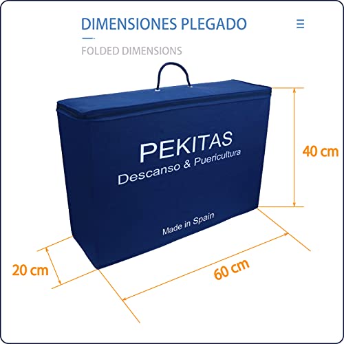 PEKITAS - Materasso per culla da viaggio, pieghevole, 60 x 120 cm, spessore 6 cm, rivestimento in cotone lavabile, traspirante, privo di tossici, prodotto in Spagna