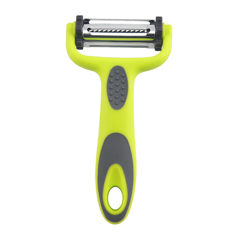 e una lama per peeling seghettata per una pelle più morbida. È facile e delicato sbucciare diversi tipi di frutta e verdura in 3 modi diversi. Lame di alta qualità: realizzate in acciaio inossidabile di alta qualità e lame affilate con design antitaglio. mantieni pulito e durevole. Multifunzionale e veloce, è un aiuto in cucina che fa risparmiare tempo. Maniglie comode: l'impugnatura è progettata ergonomicamente con una comoda curvatura per una buona presa, aiuta a prevenire l'affaticamento del polso o il dolore da artrite per un cibo facile e veloce macinazione. Plapatate multiuso per frutta e verdura: esclusivo strumento da cucina 3 in 1 con lame multifunzione per tagliare, sbucciare, sminuzzare e affettare frutta o