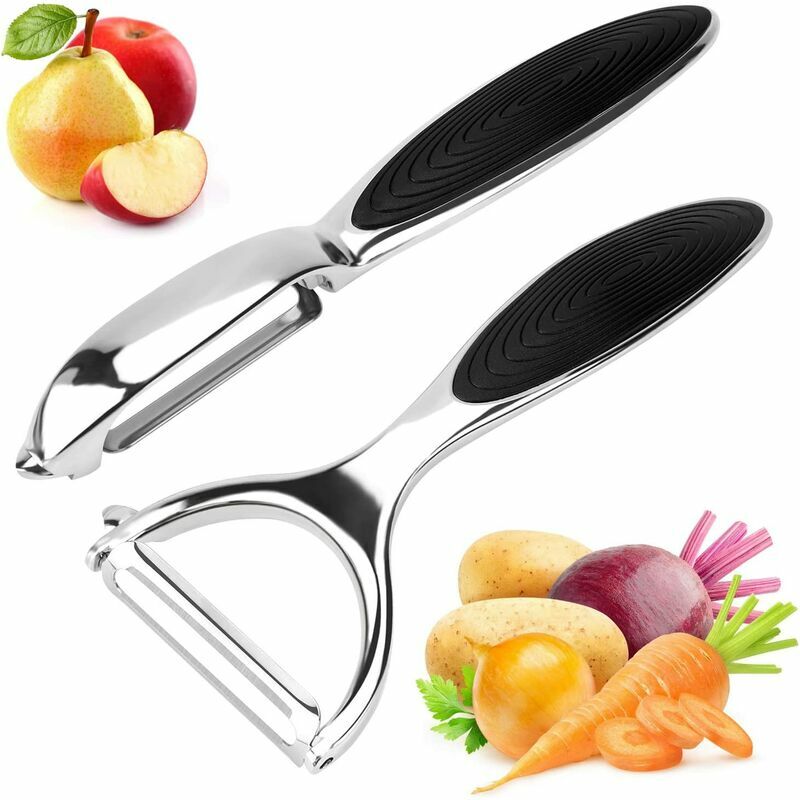 Pelaverdure con lama rotante ultra affilata e larga per mantenere una minima resistenza durante la pelatura, si adatta perfettamente a frutta o verdura. Anche l'occhio della patata è un gioco da ragazzi 【Design eccellente】 Il pelapatate da cucina è realizzato con lame in acciaio inossidabile di alta qualità, il corpo in lega di zinco non arrugginisce, è resistente e non si corrode facilmente. Il design integrato consente di rimuovere facilmente i fori 【Impugnatura ergonomica】 L'impugnatura del pelapatate da cucina è progettata per essere tenuta comodamente in mano con un'impugnatura antiscivolo, adatta per destrimani o mancini consegnato. Facile da pulire: questo pelapatate scivola sulle verdure, non si ostruisce con le bucce, può essere facilmente pulito allineandosi con la colonna d'acqua per risciacquare 【【【 Ampiamente usato】 La pelatrice per frutta e verdura è adatta per patate, pere, mele, pomodori, verdure, carote, cetrioli, ecc. Può anche sbucciare cibi come cioccolato o