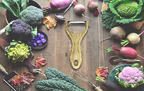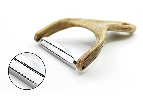 Pelapatate, Pela Patate Ideale per Pelare Patate, Carote, Verdure e Sbuccia Frutta. Lama Affilata in Acciaio Inox, Manico Effetto Legno, Gadget Utili per la Cucina