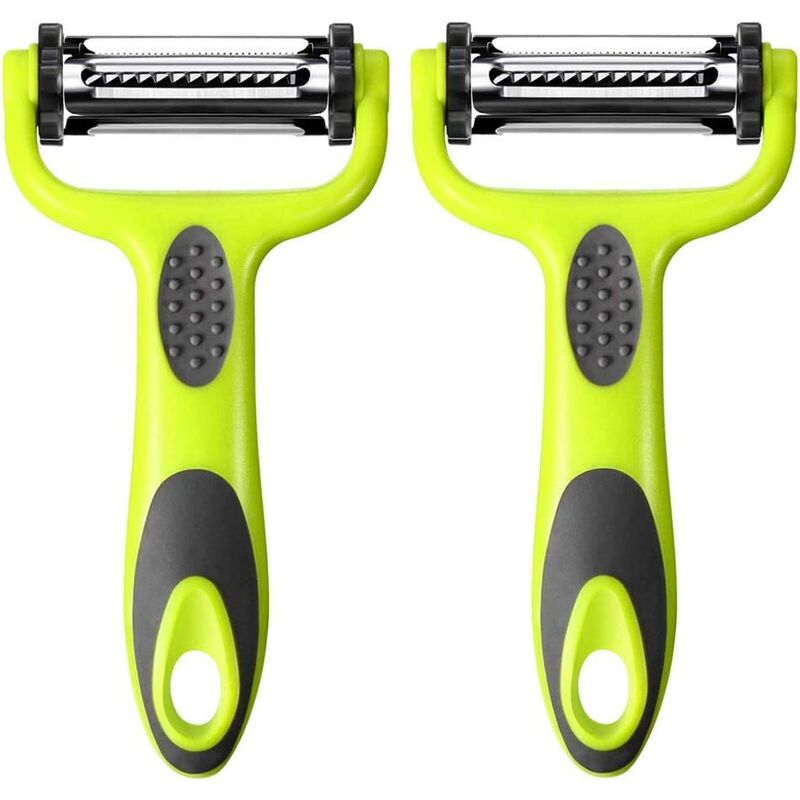 Con 3 lame seghettate extra affilate rotanti, lama e lama dritta, per un'esperienza multifunzionale. Ti consente di sbucciare facilmente e delicatamente diversi tipi di frutta e verdura in 3 modi diversi. Il manico è progettato ergonomicamente con una comoda curva per una buona presa, aiuta a prevenire l'affaticamento del polso o il dolore da artrite per una sbucciatura facile e veloce del cibo. Realizzato in acciaio inossidabile di altissima qualità e lame affilate con design antitaglio. Mantieni nitido e durevole. Multifunzionale e veloce da sbucciare, è un assistente in cucina che ti fa risparmiare tempo. Uno strumento da cucina multifunzionale, che può essere utilizzato per tagliare, sbucciare, sminuzzare e tagliare frutta o verdura. Molto adatto per carote, patate, zucche, cetrioli, pastinache, mele, zucchine, ecc.
