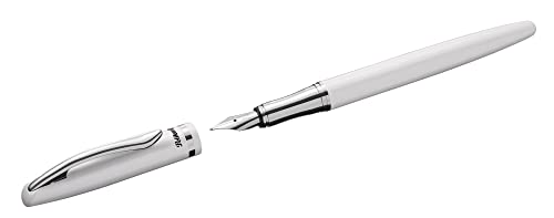 Pelikan Jazz Elegance 807081 - Penna stilografica, pennino medio, inchiostro blu, ricarica inclusa, metallo, bianco, in scatola, 1 pezzo