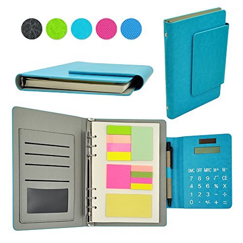 PU Pelle 6 Anello Riempibile Taccuino con Calcolatrice Solare e Slot per Schede Multifunzione Binder Taccuino Organizzatori Personali per Business Ufficio 8.5"