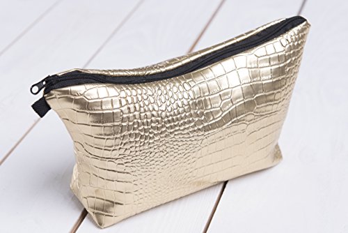 In pelle di coccodrillo imitazione oro Pennino book astuccio a forma di gatto necessaire sacchetto beauty case Make Up Trucco cosmetico con sacchetto Bag