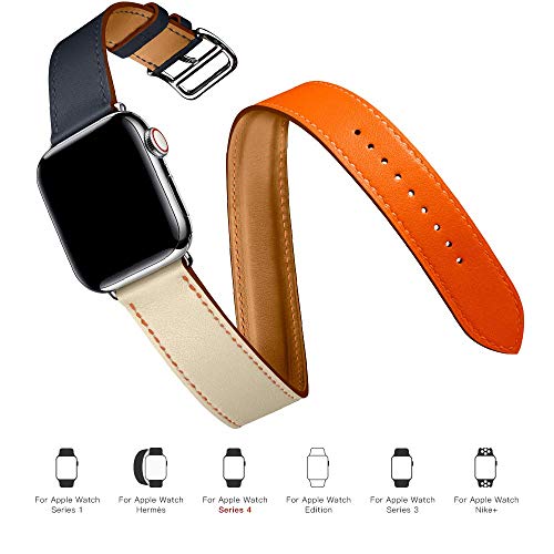 Pelle Compatibile per Apple Watch 38mm 40mm 41mm 42mm 44mm 45mm, Cinturino Doppio Tour Compatibile con iWatch Series 7 6 5 4 3 2 1 SE (Indaco,38mm 40mm 41mm)