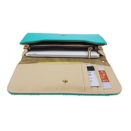 Pelle ZXK elaborazione della signora Girls Clutch Purse Portafoglio con le scanalature cerniera del supporto di carta corda telefono portatile intarsiato a mano fiori di cristallo borsa per il telefono cellulare di Apple / Samsung / Sony / LG e così via (blu)