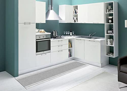 Pellecchia Colori|Tappeto Cucina Antiscivolo Lavabile in Vinile | Passatoia Antimacchia in PVC/Cotone Interni ed Esterni Stampa Digitale (52 x 100, Effetto Lino Grigio)