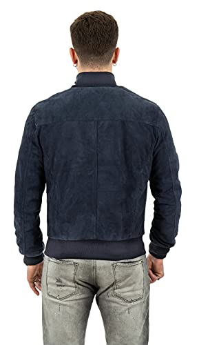 Pelletterie Borghese | Bomber in Pelle Uomo Renna Camoscio Scamosciato | Vera Pelle | Giacca in Pelle | Primavera | Giubbotto | Giubbino | Made in Italy | POLO (52, Blu)