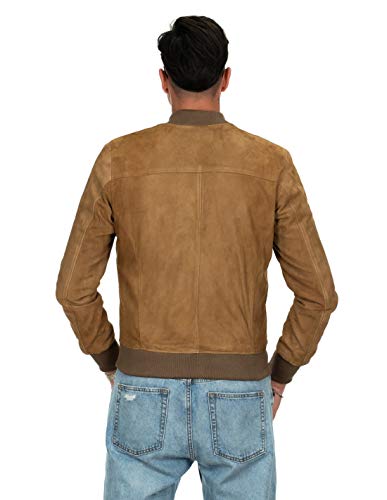 Pelletterie Borghese | Giacca Camoscio Renna Uomo Miele | Bomber in Pelle Scamosciata | Vera Pelle | Giacca in Pelle | Primavera | Giubbotto | Giubbino | Made in Italy | A101BSC (46, Miele)