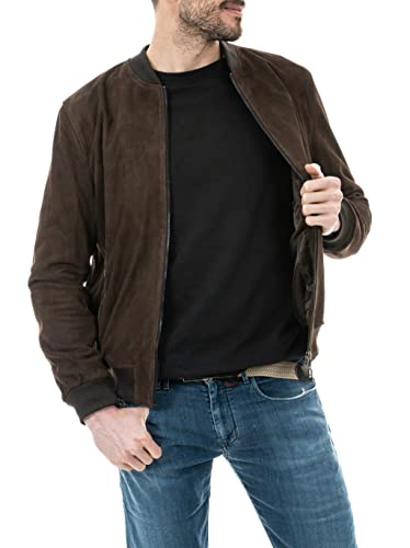 Pelletterie Borghese | Giacca Camoscio Renna Uomo Moro | Bomber in Pelle Scamosciata | Vera Pelle | Giacca in Pelle | Primavera | Giubbotto | Giubbino | Made in Italy | A101SSM (Moro, 50)
