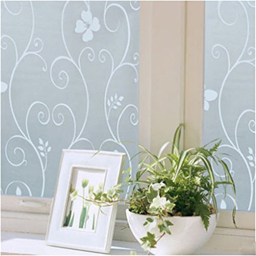 Pellicola adesiva decorativa per finestra del bagno Bodhi2000, effetto satinato, decoro floreale, autoadesiva. Perfetta per maggiore privacy, 45 x 100 cm, PVC, White, taglia unica
