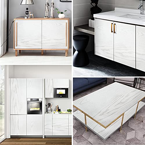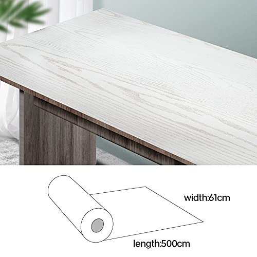Pellicola adesiva in legno, effetto legno, bianco, 61 x 500 cm, autoadesiva, impermeabile, autoadesiva, in PVC, per mobili, armadi, porte