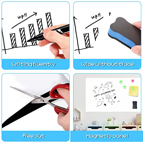 Pellicola autoadesiva per lavagna bianca, 40 x 60 cm, scrivibile, lavagna magnetica, per lavagna bianca, fai da te, con 3 pennarelli, 1 spugna, 6 icone