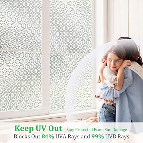 Pellicola per finestre Privacy【SENZA COLLA】: design senza colla riduce drasticamente il rilascio di sostanze chimiche, quando lo rimuovi via, non rimane traccia. Ottimo per la protezione del vetro.