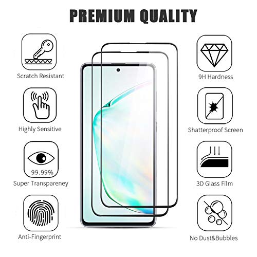Pellicola Protettiva in Vetro Temperato per Samsung Galaxy Note 10 Lite [2 Pezzi], 3D Curvo Copertura Completa, 9H Alta Definizione, Anti Graffio Completa Pellicola per Samsung Galaxy Note 10 Lite