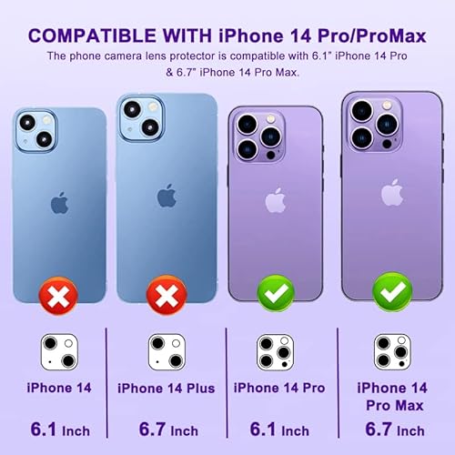 【Protezione per Lenti per Fotocamera per iPhone 14 Pro/Pro Max】 la protezione dello schermo del telefono è progettata solo per 2022 iPhone 14 Pro 6.1 pollici del e iPhone 14 Pro Max 6,7 pollici. Si prega di assicurarsi che la protezione dello schermo dell'obiettivo della fotocamera si adatti al telefono prima dell'acquisto.