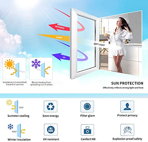 ☀【A PROVA DI RAGGI ULTRAVIOLETTI】- Pellicola Specchio Il vinile riflette l'85% della radiazione termica e ha una protezione UV del 99%, conservando un po 'di calore in inverno e mantenendolo fuori in estate, contribuendo a ridurre i costi di riscaldamento e raffreddamento. E evitare che mobili e pavimenti vengano bruciati dal sole per svanire.