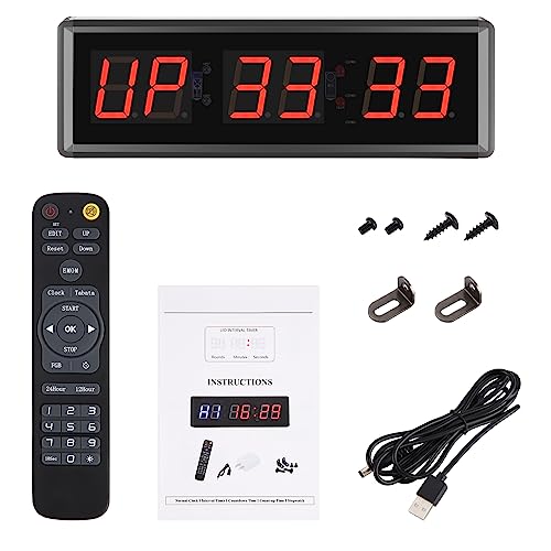 PELLOR Timer da Palestra Orologio da Parete Digitale, 1.5" Timer Intervallo Fitness LED Programmabile con Cronometro, Luminosità Regolabile, Formazione Timer con Telecomando per Casa Garage Esterno