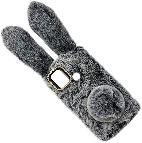 Peluche Custodia Cover per Galaxy A21S,Custodia Coniglio Peluche per Galaxy A21S, Custodia Peloso Carino Protettiva Fluffy Cover Faux Pelliccia Bambine Copertura Caso per Samsung Galaxy A21S - Grigio