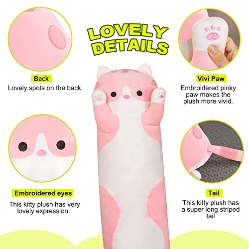 Peluche Gatto, Animali di Peluche Gigante, Morbido Peluche, Bambola di Peluche, Cuscino di Peluche, Giocattoli Farciti, Regalo Creativo per Bambino Ragazze Ragazzi Compleanno Natale (110cm, Rosa)